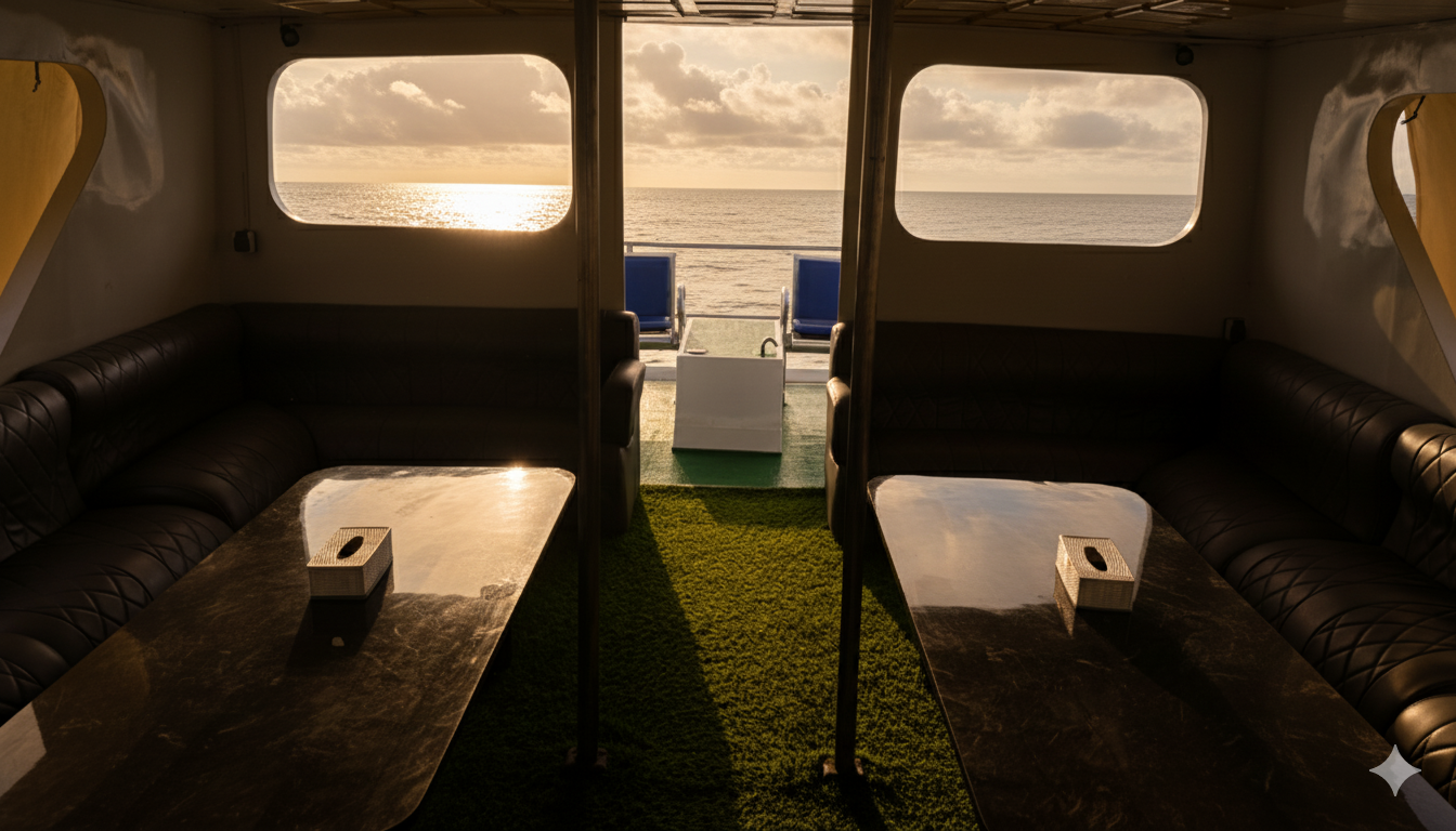 Our ships are equipped with a variety of entertainment facilities to meet all your entertainment needs. Music with an impressive sound system and a bar with all the best menus.